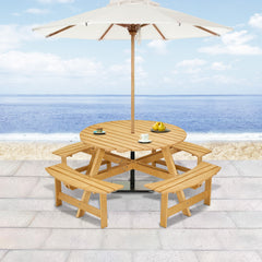 8-Person Outdoor Round Picnic Table Set Umbrella Hole Homary