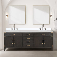 Brown Oak Double Bath Vanity White Quartz Top Mirrors Homary