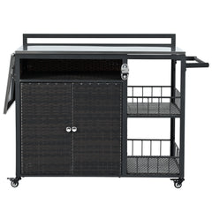 Multifunctional Outdoor Serving Cart – Designed for ultimate versatility, this outdoor cart serves as a mobile bar, buffet station, or storage unit, making it perfect for backyard gatherings, poolside parties, and BBQs. The combination of a sturdy iron frame and weather-resistant PE rattan ensures both durability and a stylish look that complements any outdoor décor.