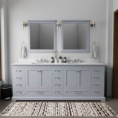 Dark Grey Double Bath Vanity Carrara Marble Top Faucet Homary
