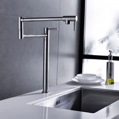 Pot Filler Faucet Commercial Wall Mount Kitchen Sink Faucet Folding Stretchable with Single Hole Two Handles