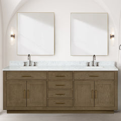 Grey Oak Double Bath Vanity Carrara Marble Top Faucet Homary