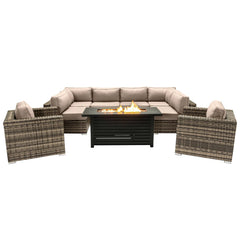 LSI 9-Piece Outdoor Sectional Set Fire Pit Table Modern Gray Homary