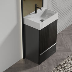 Matt Black Bathroom Vanity Ceramic Sink Freestanding KD zuri