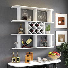 - The classic and chic appearance gives home wall hanging wine shelves a retro and elegant style. The layered design is reasonable, making it easy to store more items, and the glass bar shelves for liquor bottles wall mountedcentral wine grid design facilitates classified storage.