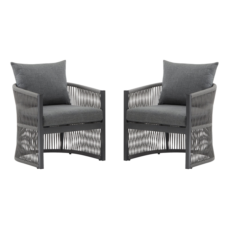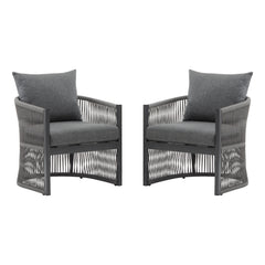 Set of 2 Modern Gray Curved Aluminum Lounge Chairs Rope-Weave Cushioned lazy boy